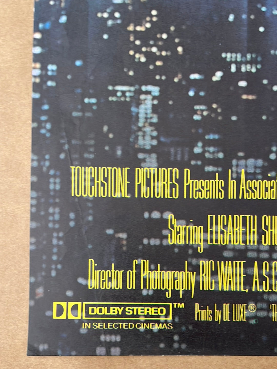 Original 1988 UK Quad theatrical poster for Adventures in Babysitting (released internationally as A Night on the Town), Chris Columbus's spirited 1987 comedy adventure. This unfolded British Quad (30" x 40" / 76 x 102 cm) features Elisabeth Shue in a breakout role alongside Keith Coogan, Anthony Rapp, and a young ensemble cast navigating an eventful night through the city. Illustrated by renowned artist Drew Struzan, the poster captures the film's youthful energy and comedic charm. The piece remains in excellent condition with only minimal wear to edges and folds, preserving the vibrant artwork from its original theatrical release. An appealing collectible for fans of 1980s family comedies and classic cinema illustration.