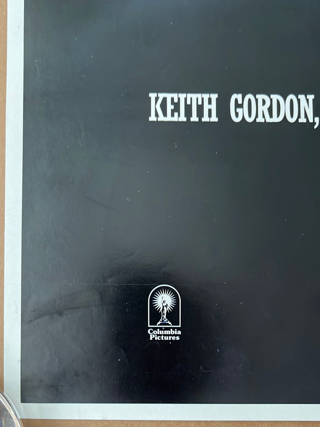 A vintage 1983 Yugoslavian theatrical poster for John Carpenter's cult horror film *Christine*. This original folded cinema poster measures 19¼" × 27" (49 × 69 cm) and captures the menacing aesthetic of this supernatural thriller about a possessed automobile. The ensemble cast features Keith Gordon, John Stockwell, Alexandra Paul, Robert Prosky, Harry Dean Stanton, and Roberts Blossom. The poster exhibits minor edge and fold wear along with pin holes from period display. Consult the detailed condition photographs before ordering.