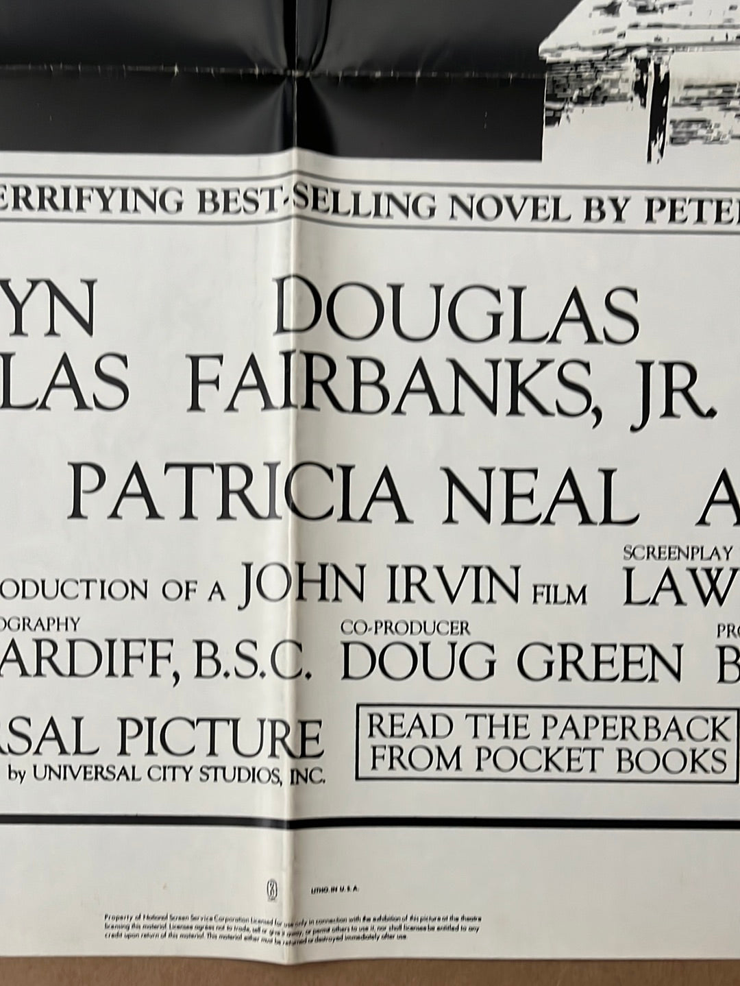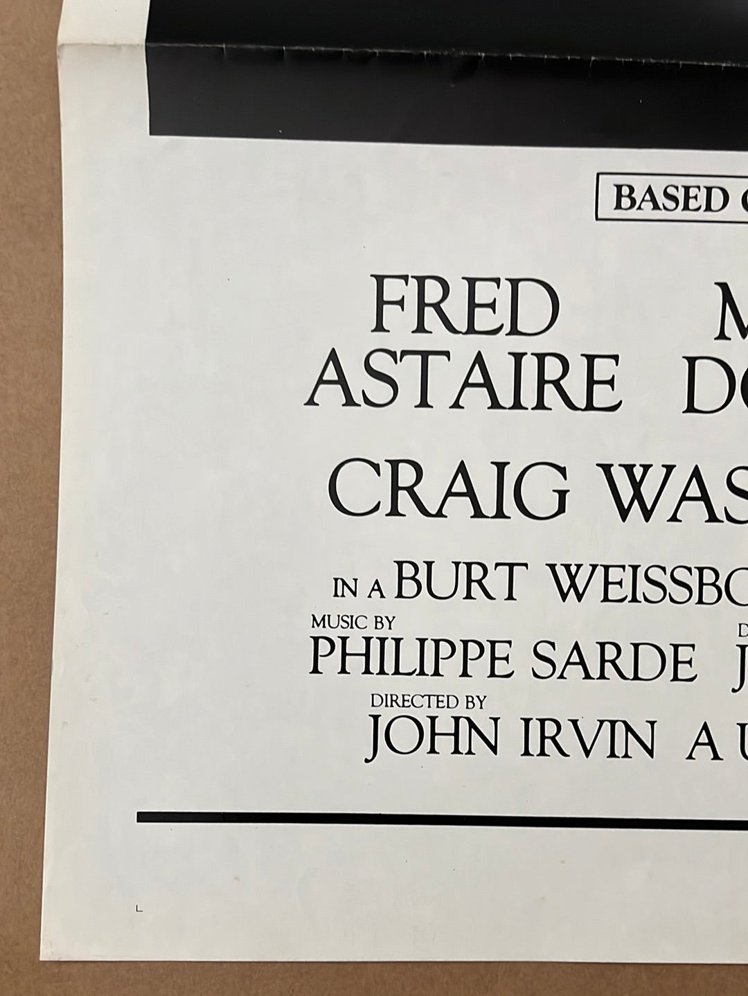 Original theatrical one-sheet from Ghost Story (1981), directed by John Irvin. Measures 27" × 41" (69 × 104 cm) in folded format. Adapted from Peter Straub's bestselling novel with a screenplay by Lawrence D. Cohen, this supernatural horror thriller features an exceptional ensemble cast including Fred Astaire, Melvyn Douglas, and Douglas Fairbanks Jr.—marking the final feature film appearance for all three legendary actors. John Houseman, Craig Wasson, Patricia Neal, and Alice Krige complete the distinguished cast. The vintage poster displays minor edge and fold wear typical of theatrical exhibition and age. A significant piece of cinema history capturing the convergence of classic Hollywood talent with 1980s horror filmmaking. Condition details visible in photographs.