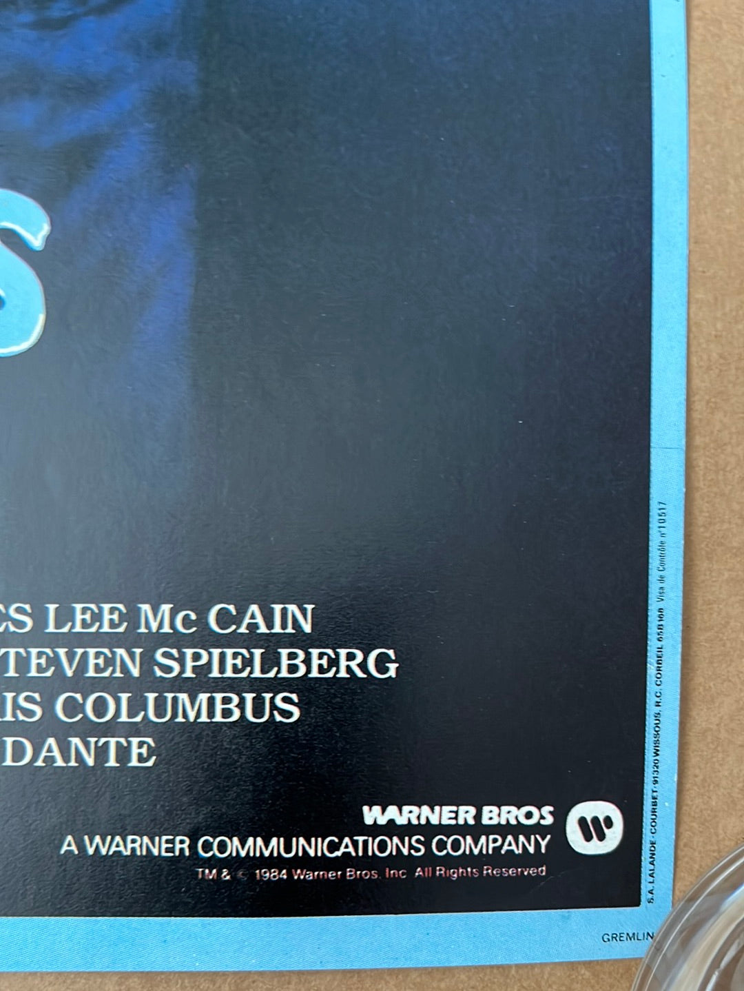 Original vintage French "petite" poster from Gremlins (1984) measuring 15¼" × 20½" (39 × 52 cm) in folded format. Joe Dante's Christmas-set creature feature, written by Chris Columbus and executive produced by Steven Spielberg, Frank Marshall, and Kathleen Kennedy, stars Zach Galligan and Phoebe Cates alongside an ensemble cast including Hoyt Axton, Polly Holliday, Corey Feldman, and Howie Mandel as the voice of Gizmo. Artwork by John Alvin. This darkly comedic monster fantasy explores the chaos unleashed when a young man breaks three crucial rules governing his mysterious new pet. The vintage poster exhibits minor edge and fold wear, small creases, and pin holes from theatrical display. A collectible French-market artefact from one of the 1980s' most enduring holiday horror-comedies. Condition details visible in accompanying photographs.