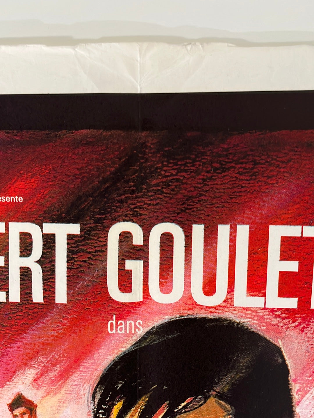 An original French theatrical poster for I Deal in Danger (1966), Walter Grauman's WWII espionage thriller released in France in 1967. This folded affiche measures 23½" × 31½" (60 × 80 cm) and features artwork by artist Boris Grinsson promoting the film's morally ambiguous spy narrative. The cast includes Robert Goulet in a dramatic departure from his lounge-singer persona, alongside Christine Carere, Donald Harron, Horst Frank, and Werner Peters. The poster's taglines emphasise the protagonist's precarious position between allegiances and the treacherous dynamics of wartime intelligence work. Condition is good with edge wear; the imagery remains legible. A compelling artefact of mid-1960s French cinema distribution and Cold War-era espionage thriller marketing.
