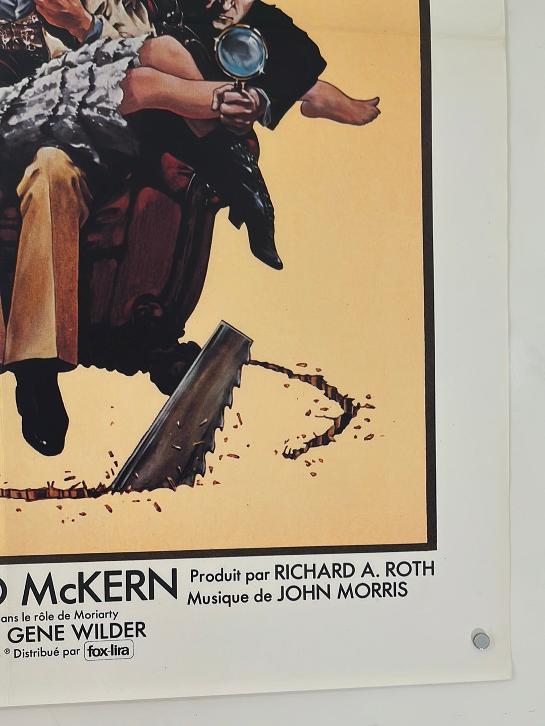 An original French theatrical poster for The Adventure of Sherlock Holmes' Smarter Brother (1975), Gene Wilder's comedic take on Arthur Conan Doyle's detective canon. This folded affiche from the 1976 French release measures 23¾" × 31¼" (60 × 79 cm) and promotes Wilder's directorial effort, which he also wrote and starred in as Sigerson Holmes. The supporting cast includes Madeline Kahn, Marty Feldman, Dom DeLuise, Leo McKern as Moriarty, and Douglas Wilmer as Sherlock Holmes. The poster balances mystery and humour, reflecting the film's genre-blending approach. Condition is excellent with only minor edge wear; the artwork remains vibrant. A delightful artefact of mid-1970s French cinema distribution and literary adaptation comedy.
