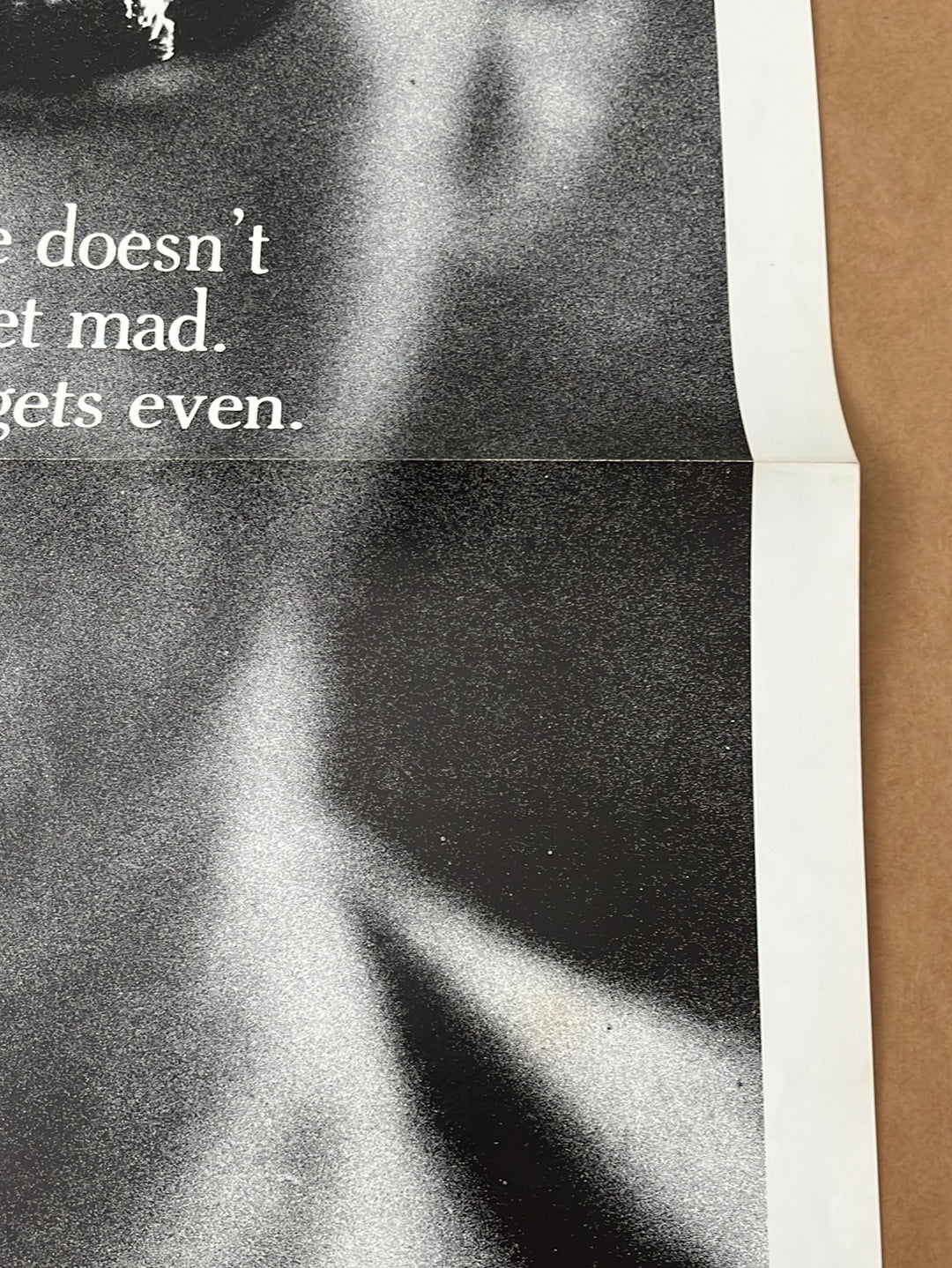 Original vintage US One Sheet theatrical poster for The Farmer (1977), David Berlatsky's raw revenge thriller released internationally as Blazing Revenge. This folded One Sheet (27" x 41" / 69 x 104 cm) stars Gary Conway as a man driven to methodical vengeance after surviving a brutal crime spree, supported by Angel Tompkins, Michael Dante, and George Memmoli. The film's uncompromising narrative of retribution and justice reflects the gritty crime cinema of the 1970s. The poster bears authentic signs of age and theatrical exhibition—minor edge and fold wear with some yellowing along the creases—characteristic of genuine period materials. A striking collectible for devotees of 1970s exploitation cinema and revenge-driven action narratives.