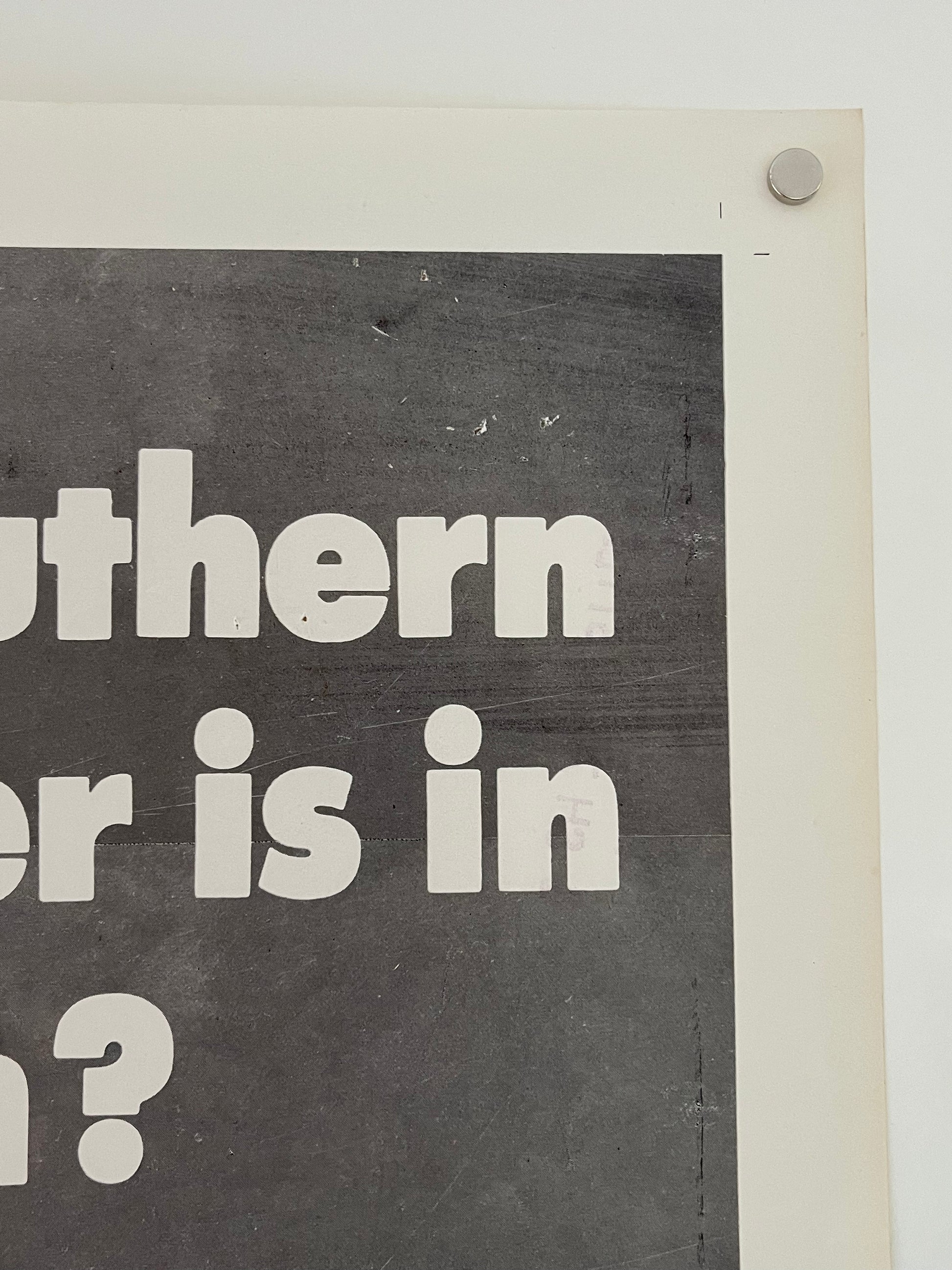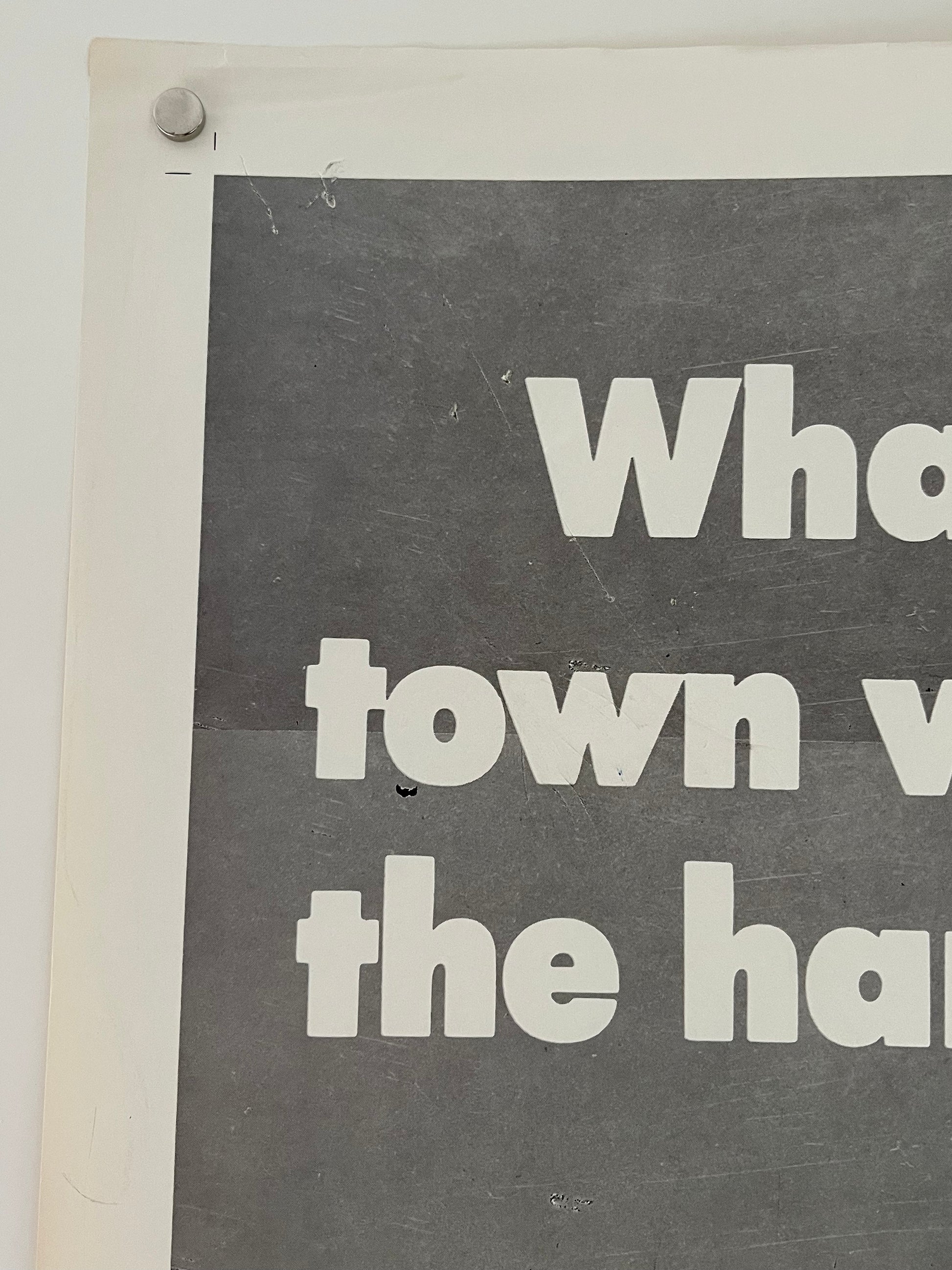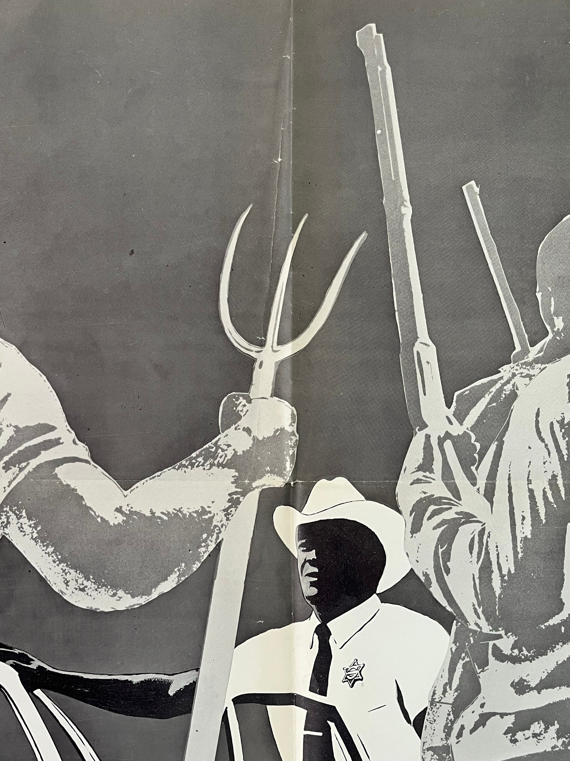 ...Tick ...Tick ...Tick... (1970)—original US one-sheet Style A poster measuring 27" × 41" (69 × 104 cm). Directed by Ralph Nelson, this race relations crime melodrama stars Jim Brown as a newly elected Black sheriff, George Kennedy as his white predecessor, Fredric March as the Mayor, Lynn Carlin, and Don Stroud. The film explores tension and conflict in a Southern town through provocative taglines addressing racial dynamics and power shifts. The poster shows period wear including pinholes with damage from removal and fold creasing consistent with theatrical display and storage. Condition details visible in photographs.